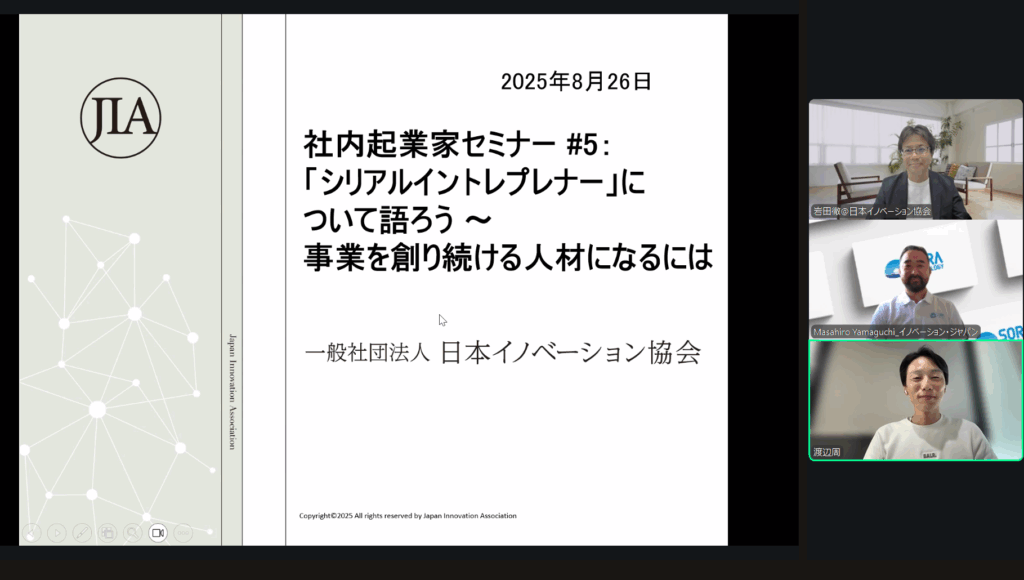 2025年8月26日(火)に「社内起業家セミナー #5: 「シリアルイントレプレナー」について語ろう ~ 事業を創り続ける人材になるには」を実施いたしましたので、ご報告いたします。