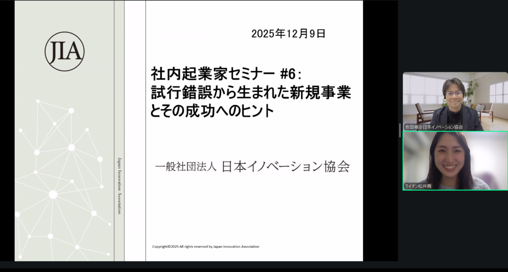 2025年12月9日(火)に「社内起業家セミナー #6: 試行錯誤から生まれた新規事業とその成功へのヒント」を実施いたしましたので、ご報告いたします。
