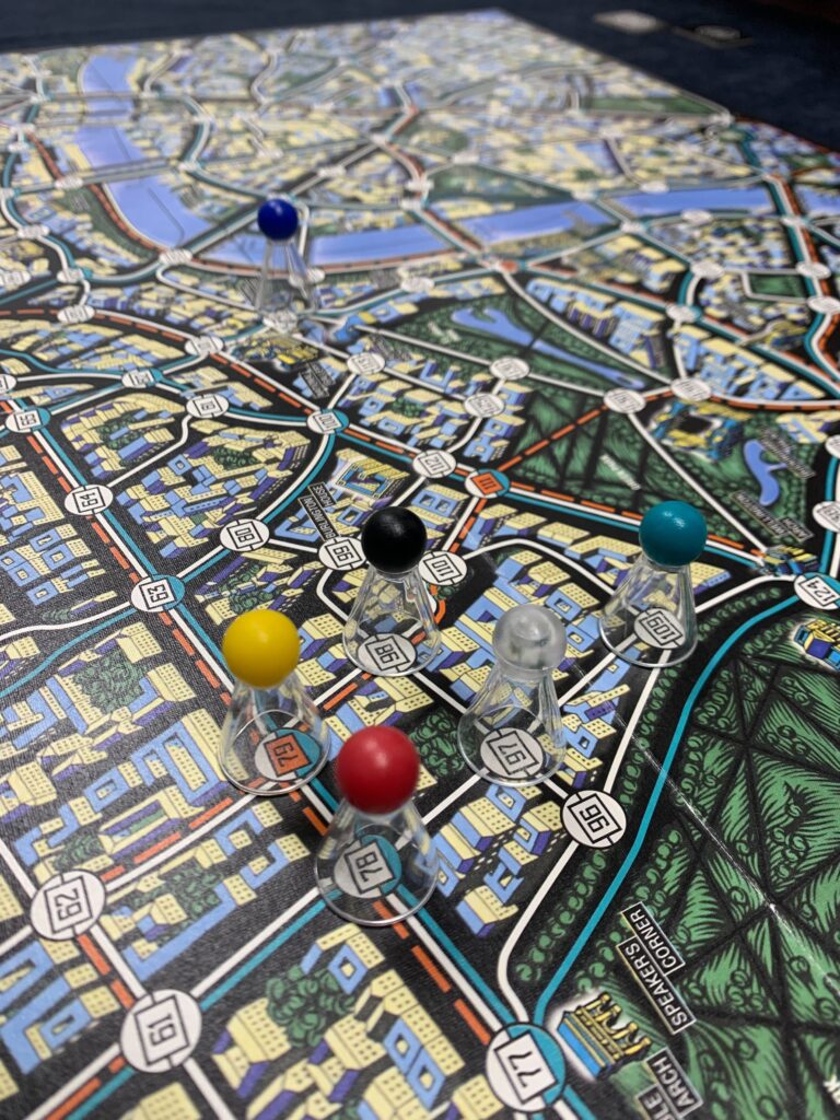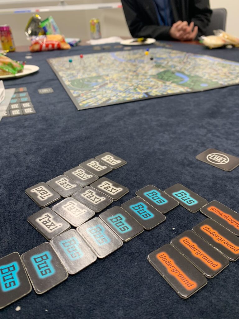 今回は、『チーム戦』をテーマに『スコットランドヤードと『コードネーム』を実施しました。実は前回のコンテンツ勉強会では急遽、体調不良の方が出てしまい、人数が揃わず… リベンジマッチです。最初は前回も実施したスコットランドヤード。舞台はスコットランド、怪盗X(1名)を警官5名が追いかけます!警察は協力して捕まえるぞ!前回も掲載したので、今回はダッシュで解説です。