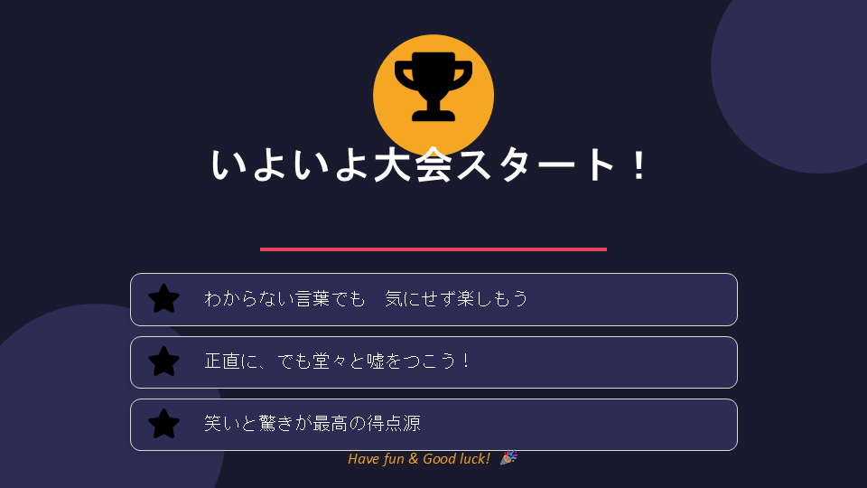 • それにしても、参加者の適合の早さは見事でした。個人的には以下、3つMVPです。腹抱えて笑った