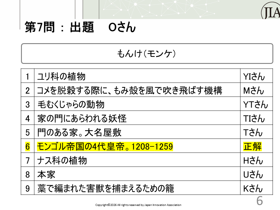 • もんけ… モンゴル帝国の4代皇帝。1208-1259。これが正解。ここでそれ来るか!?見事にひっかかりました。モンケ・ハーンというらしい